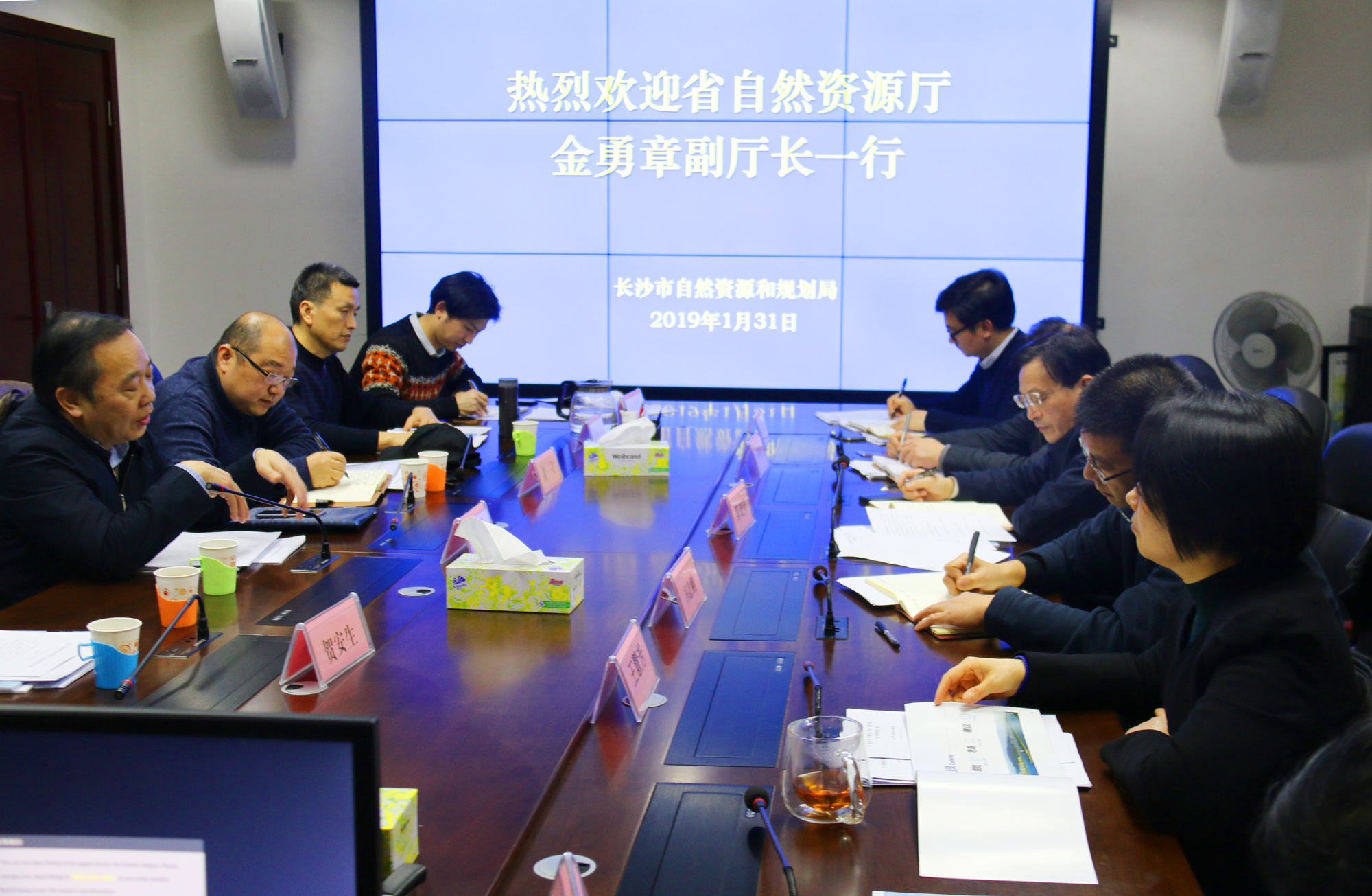 1月31日,省自然資源廳黨組成員、副廳長金勇章,國土空間規劃局局長黃立一行來長沙調研“多規合一”和信息化工作。長沙市自然資源和規劃局黨組副書記、局長馮意剛,黨組書記陳曉陽等陪同調研并參加座談會。